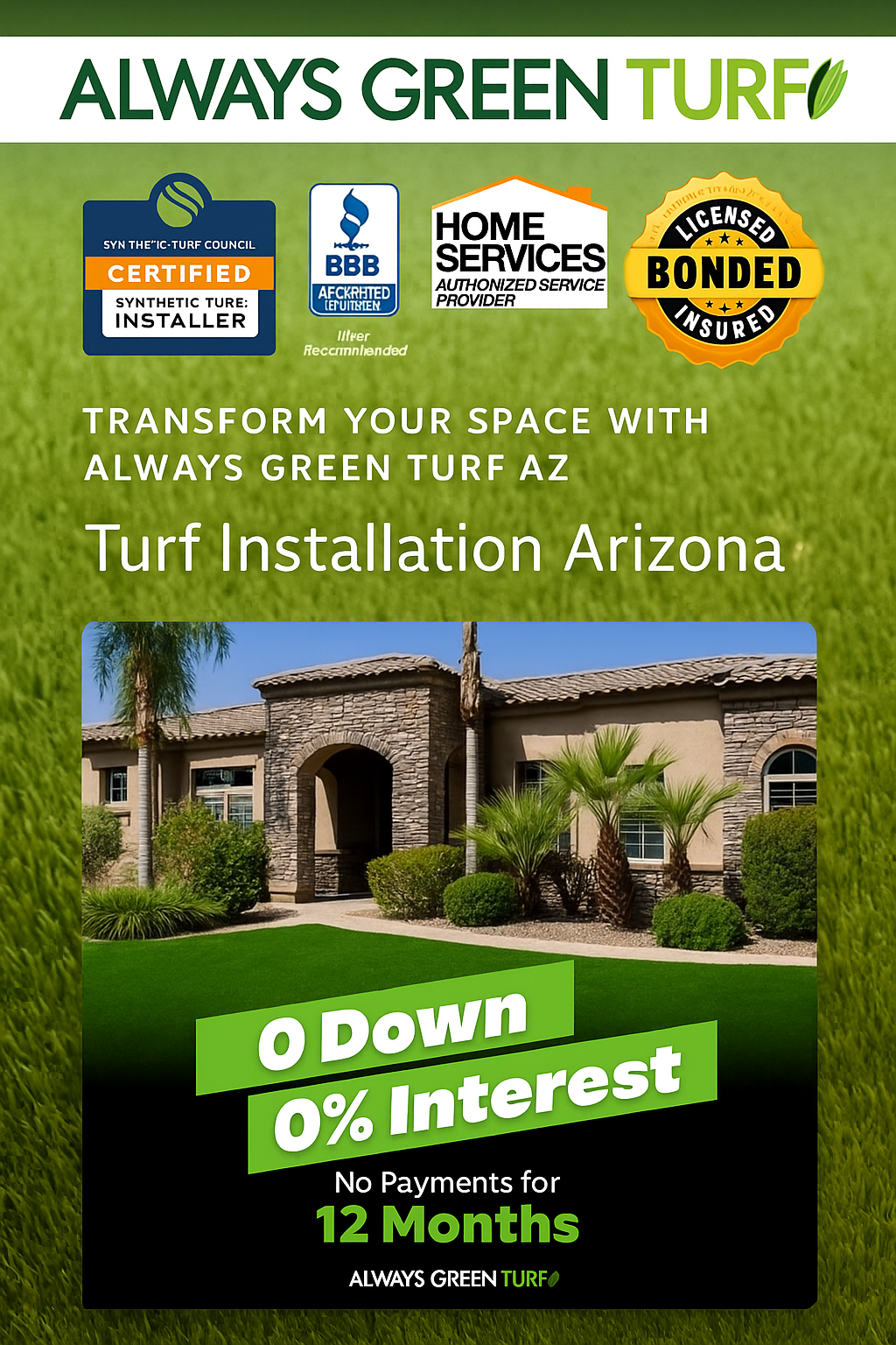 Welcome to Always Green Turf, your trusted local source for artificial grass in Phoenix, AZ, and throughout the Valley of the Sun. As a family-run, Arizona-based company, we help homeowners and businesses create outdoor spaces that look better, feel cleaner, and require far less upkeep than traditional lawns.
