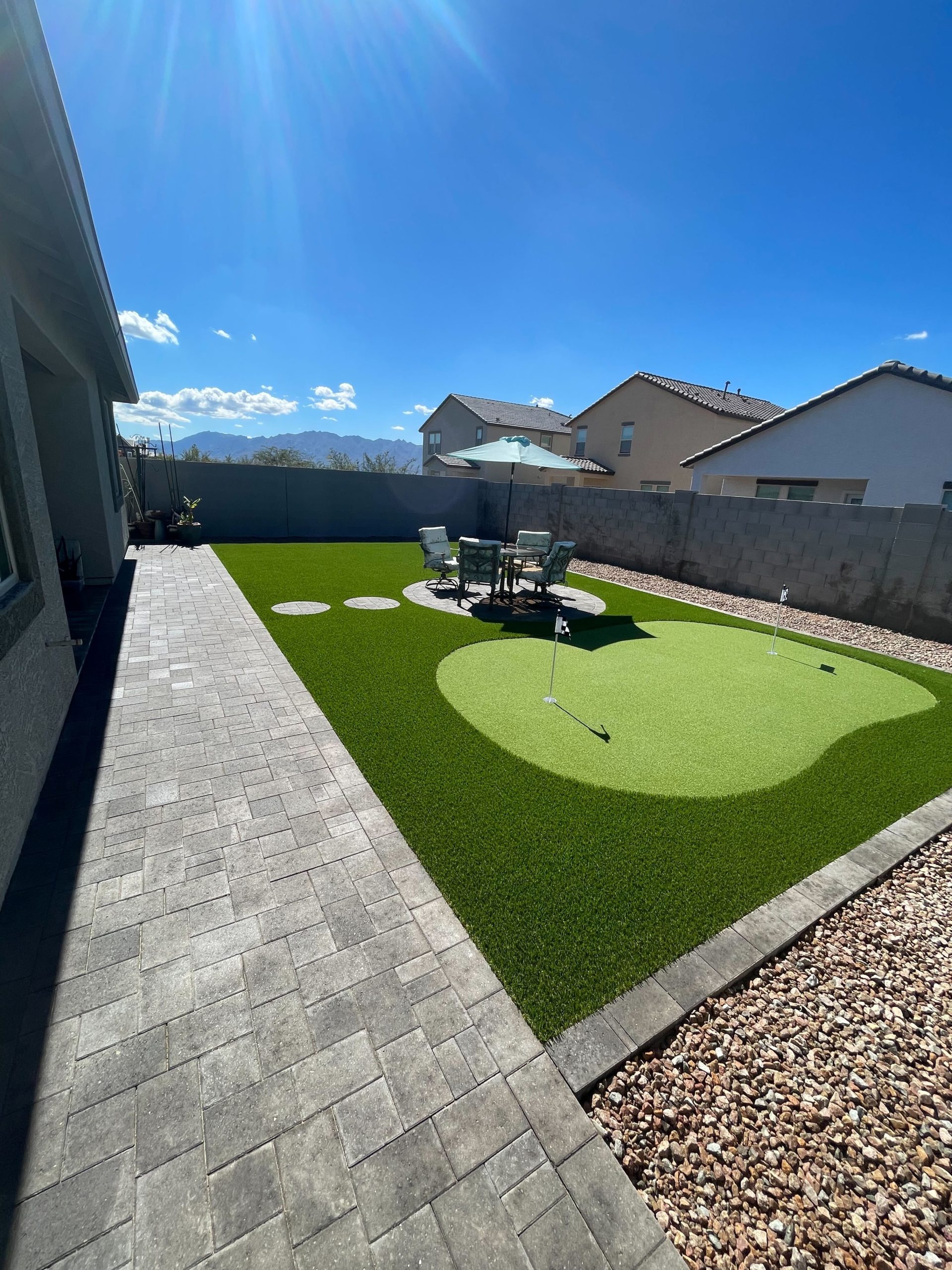 Bring the golf course to your backyard with our custom putting greens. Tailored to your space, our greens offer the perfect practice surface for golf enthusiasts.
